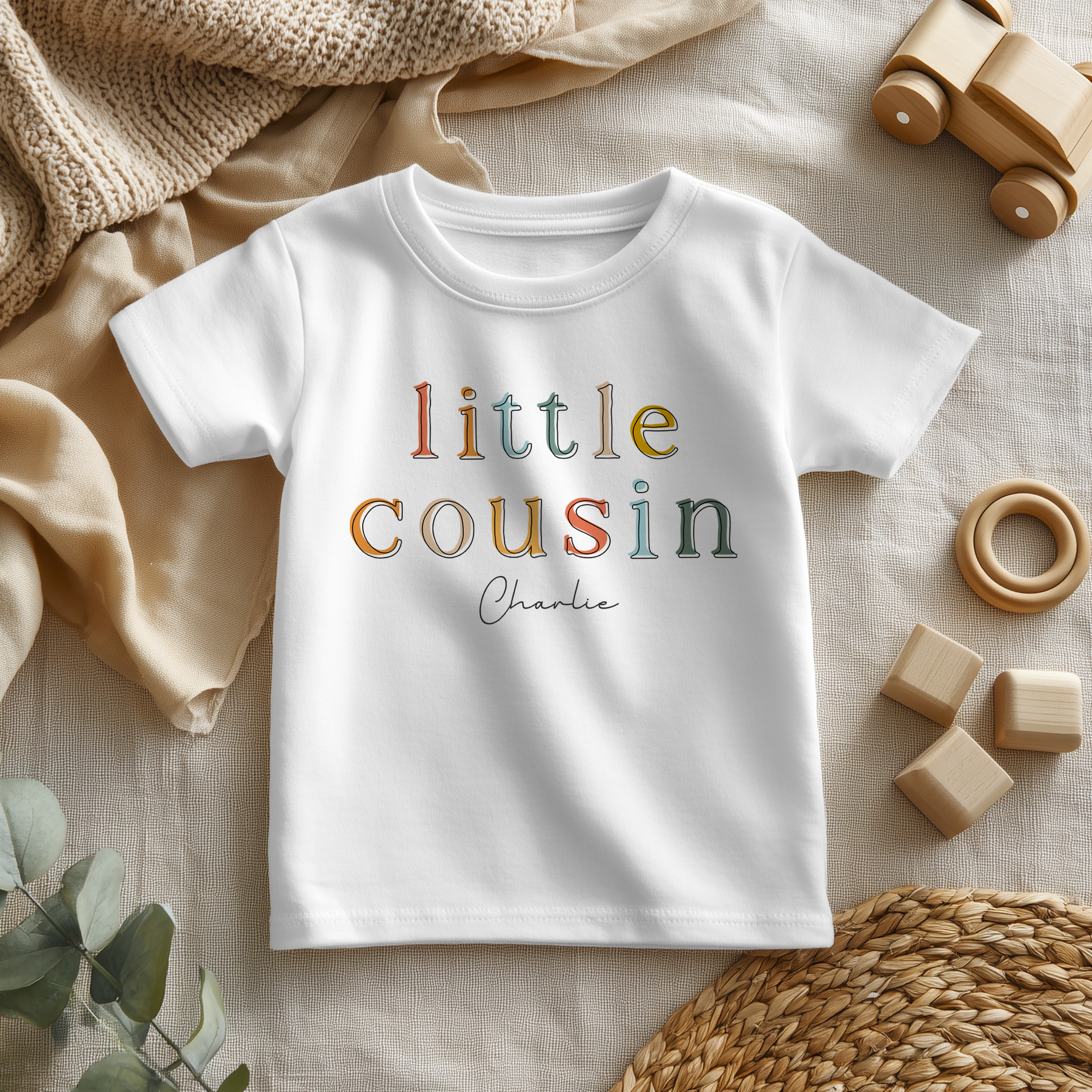 Little Cousin Colourful Letters Personalised Toddler & Kids T Shirt