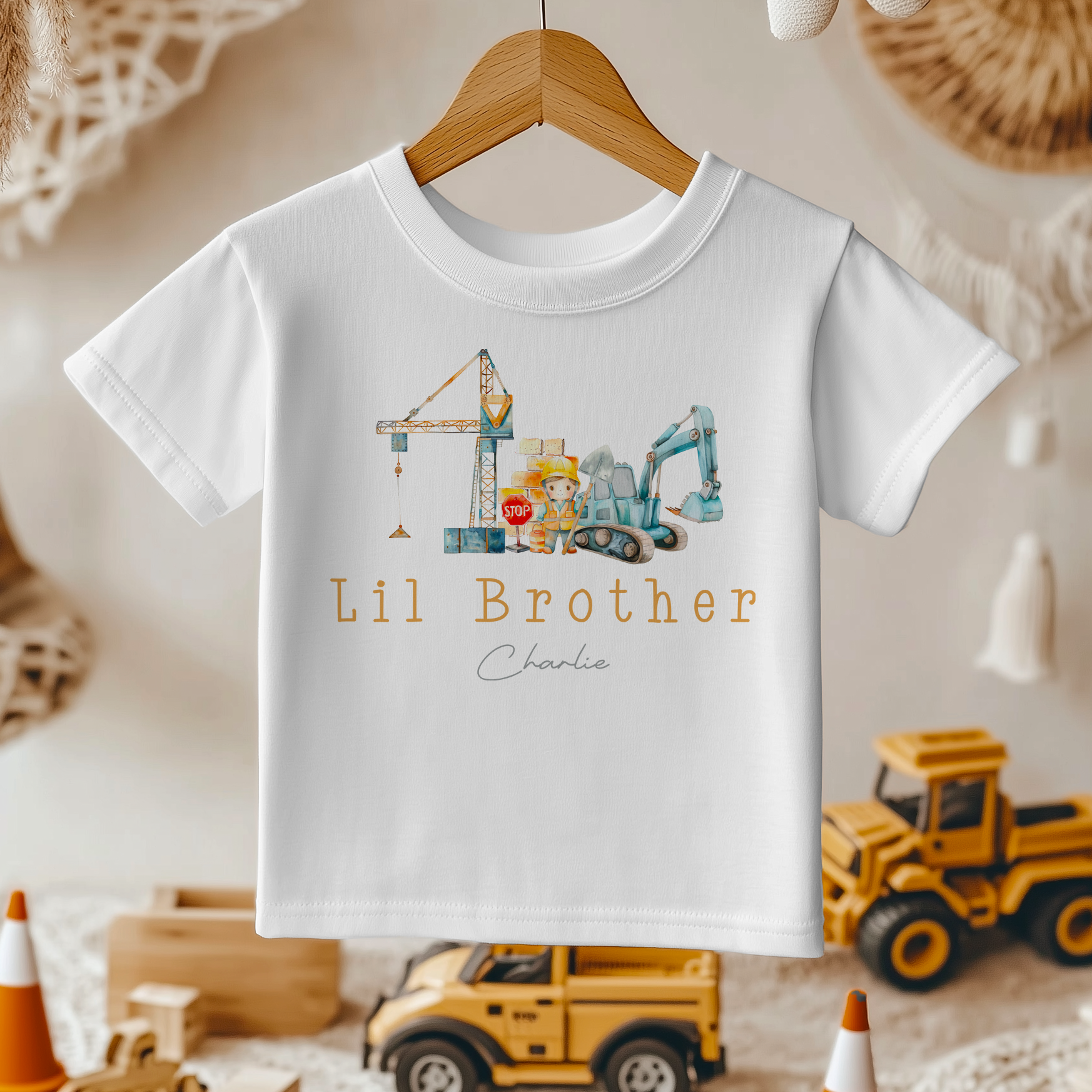 Little/Lil Brother Builder Excavator Theme Personalised Toddler & Kids T Shirt