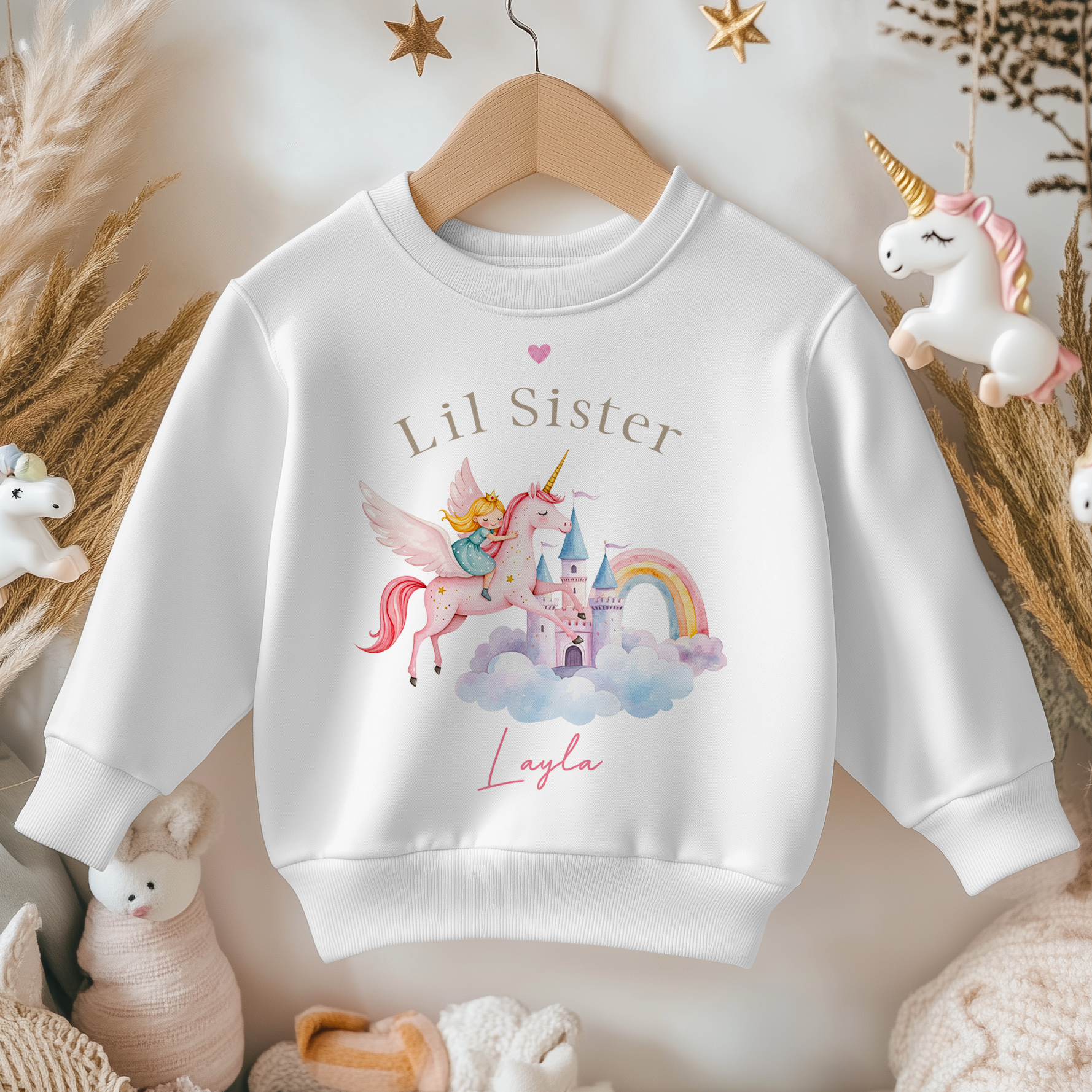 Little/Lil Sister Unicorn Princess Personalised Toddler & Kids Sweatshirt