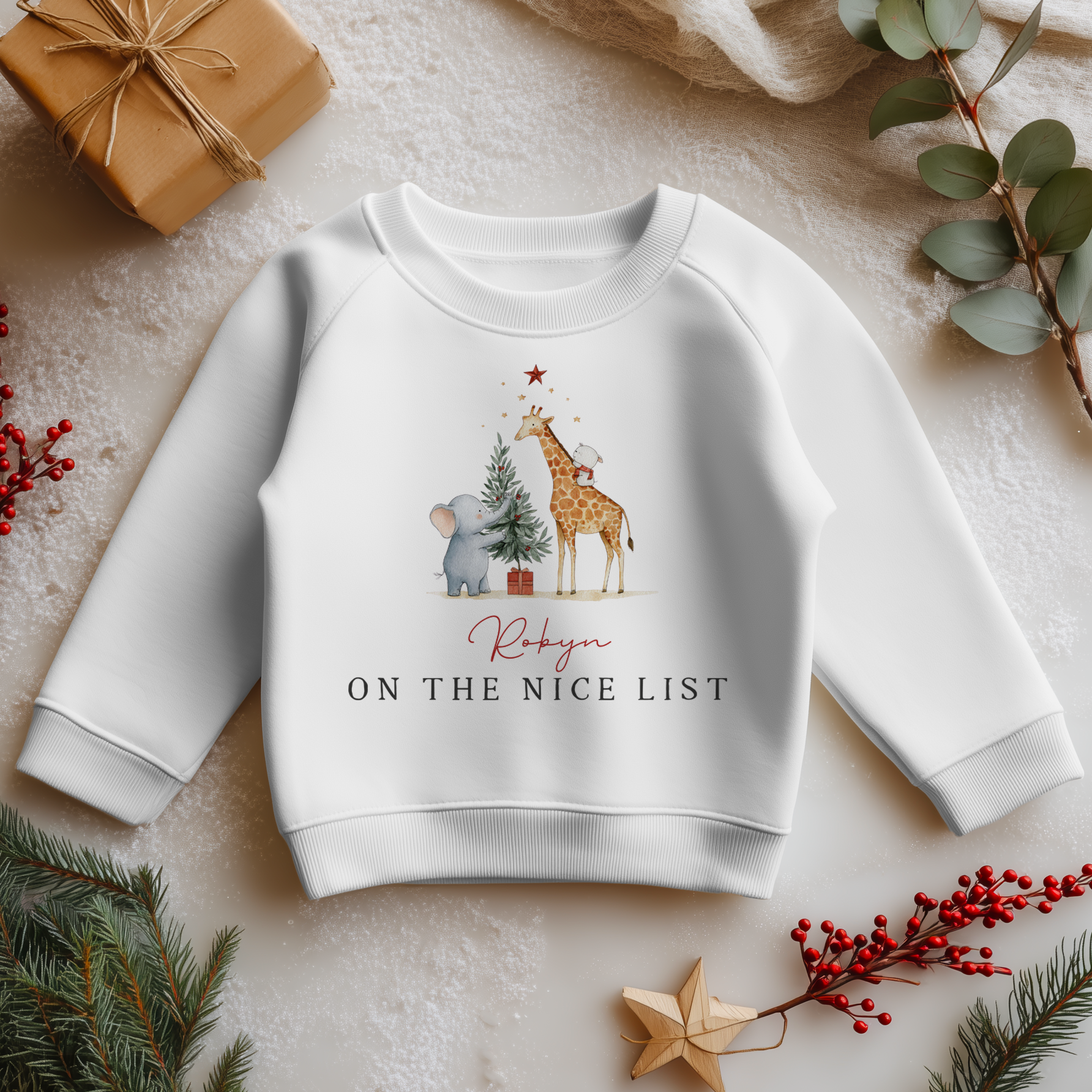 On The Nice List Cute Animals Christmas Personalised Toddler & Kids Sweatshirt