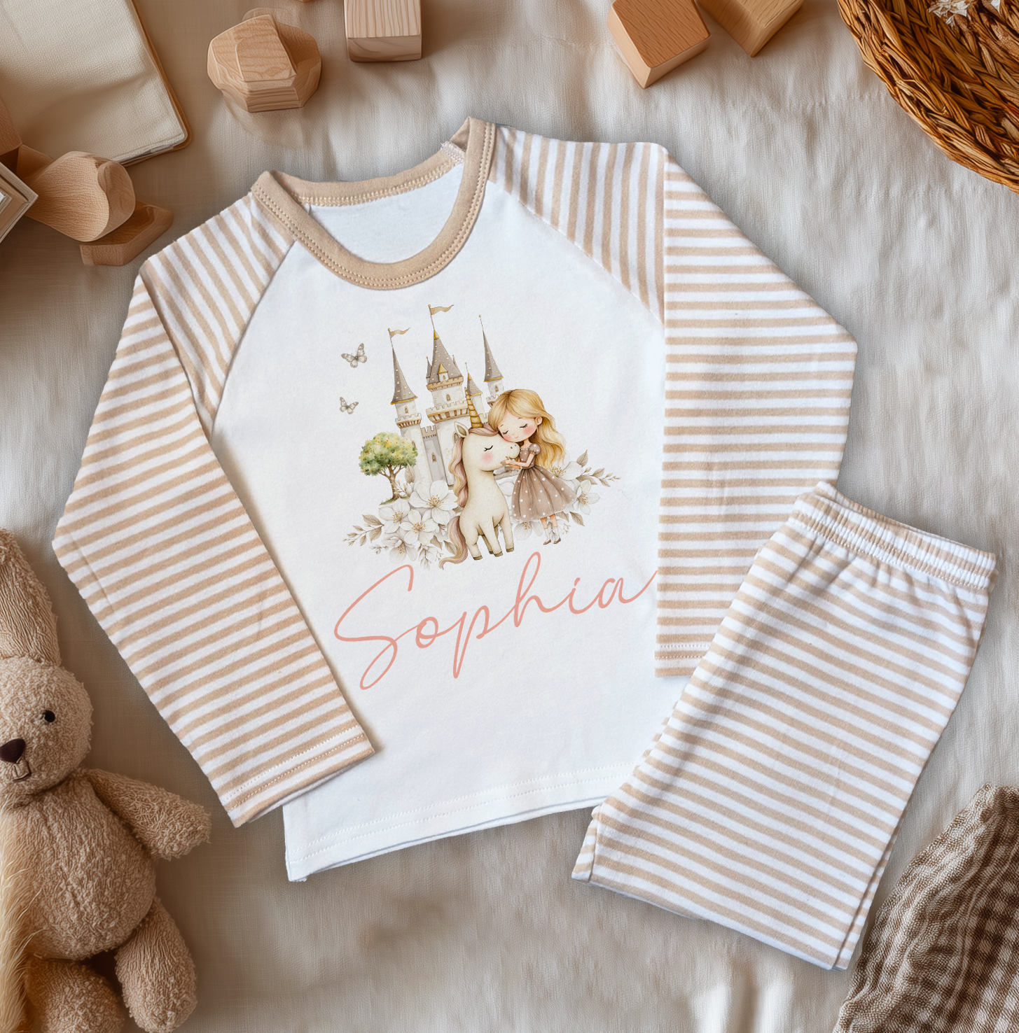 Princess With Unicorn Castle Personalised Toddler & Kids Pyjamas Set