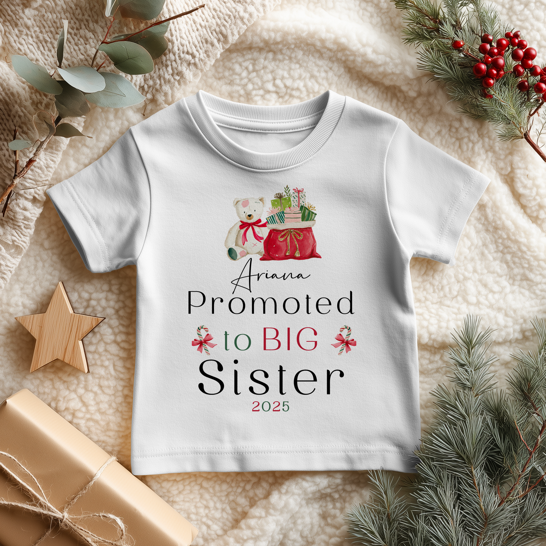 Promoted To Big Sister Christmas Teddy Bear Personalised Toddler & Kids T Shirt